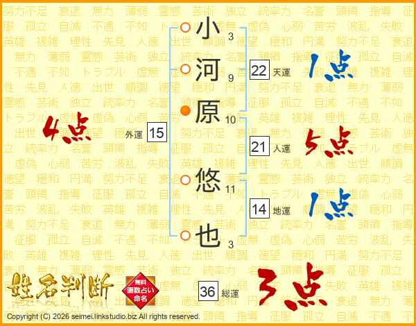 小河原悠也さんの人運は21画の5点!