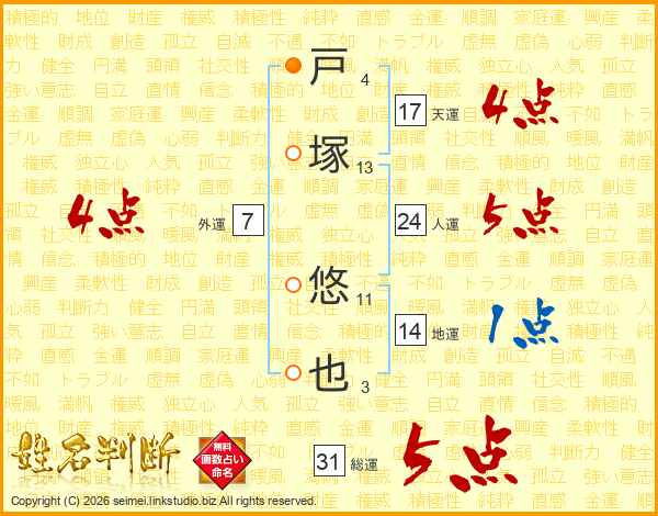 戸塚悠也さんの総運は31画の5点!