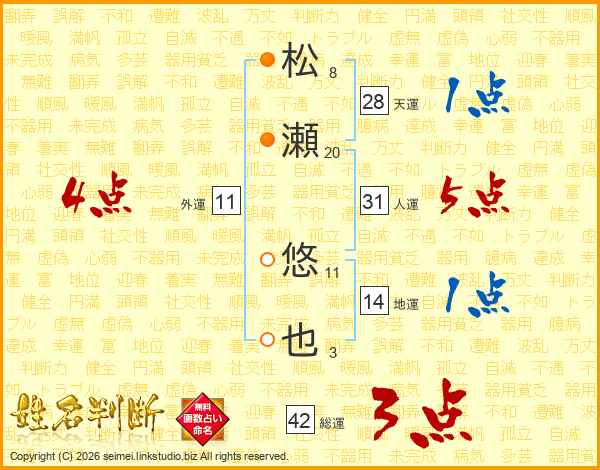松瀬悠也さんの人運は31画の5点!