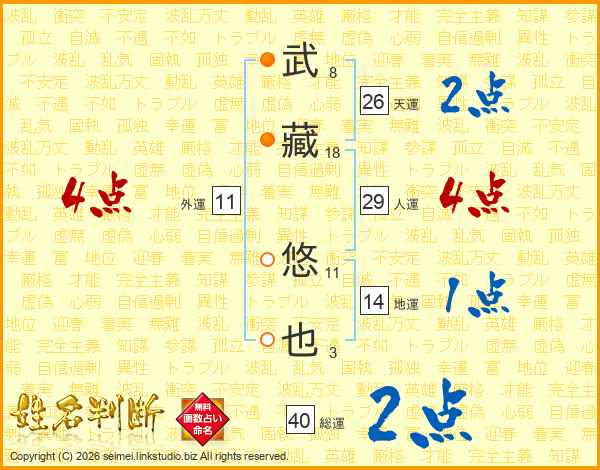 武藏悠也さんの総運は40画の2点!