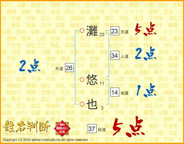灘悠也さんの総運は37画の5点!