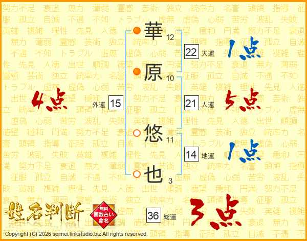 華原悠也さんの総運は36画の3点!