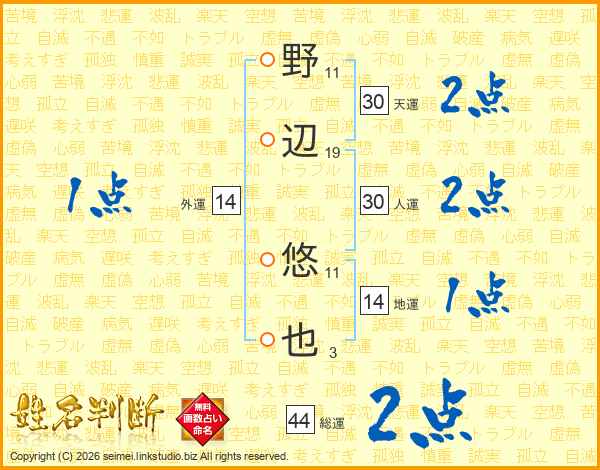 野辺悠也さんの総運は44画の2点!