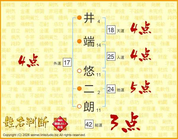 井端悠二朗さんの人運は25画の4点!