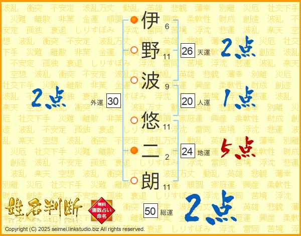 伊野波悠二朗さんの総運は50画の2点!