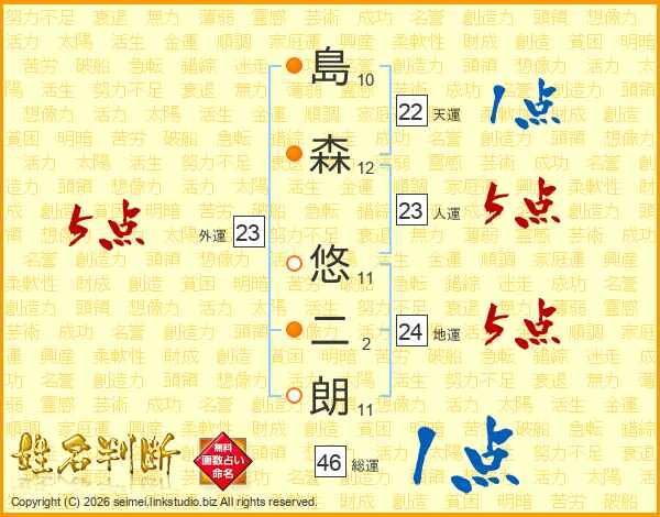 島森悠二朗さんの人運は23画の5点!
