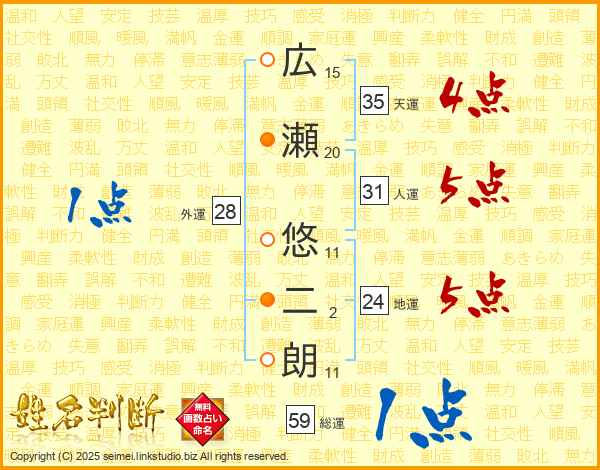 広瀬悠二朗さんの総運は59画の1点!