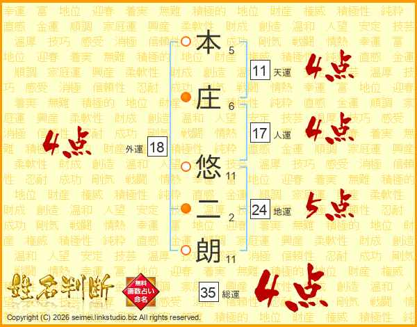 本庄悠二朗さんの総運は35画の4点!