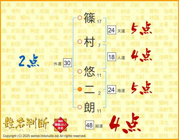 篠村悠二朗さんの天運は24画の5点!