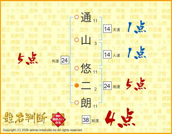 通山悠二朗さんの総運は38画の4点!
