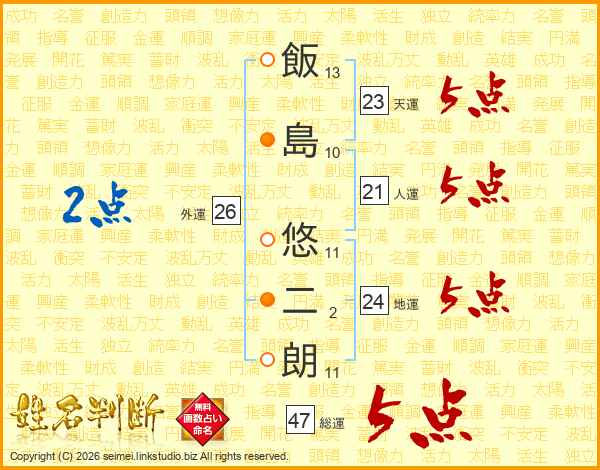 飯島悠二朗さんの総運は47画の5点!