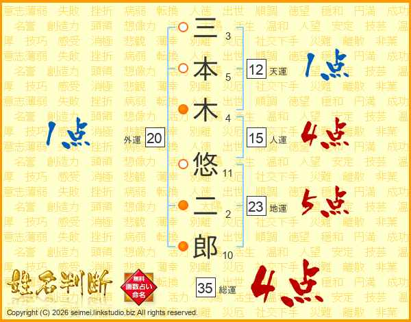 三本木悠二郎さんの総運は35画の4点!