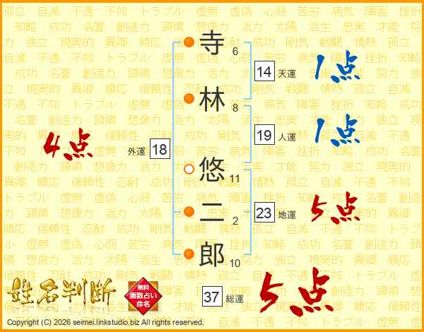 寺林悠二郎さんの総運は37画の5点!