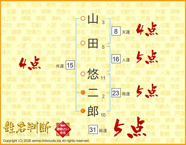 山田悠二郎さんの総運は31画の5点!