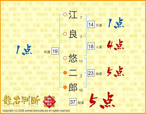江良悠二郎さんの総運は37画の5点!