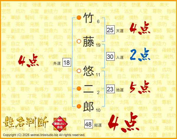 竹藤悠二郎さんの総運は48画の4点!
