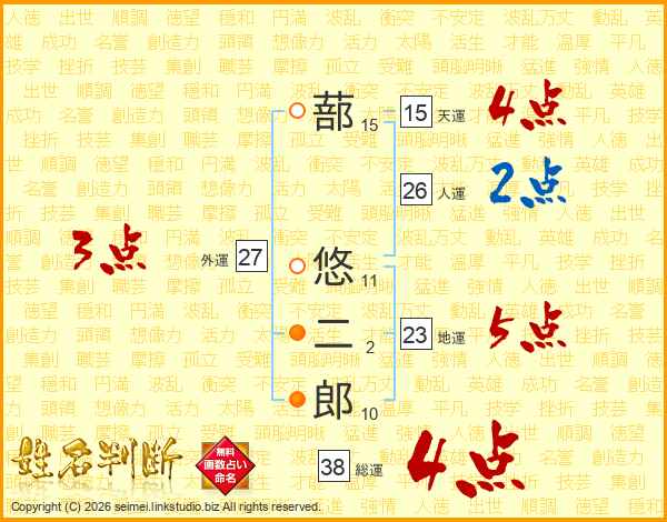 蔀悠二郎さんの総運は38画の4点!