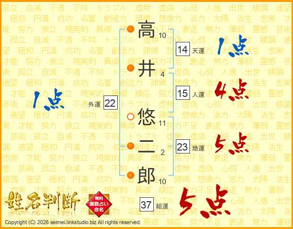 高井悠二郎さんの総運は37画の5点!