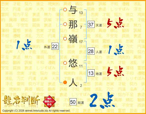 与那嶺悠人さんの天運は37画の5点!