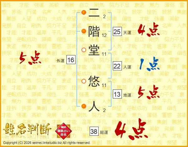 二階堂悠人さんの総運は38画の4点!