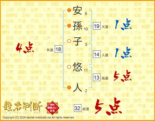 安孫子悠人さんの総運は32画の5点!