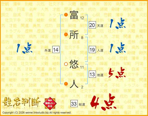 富所悠人さんの総運は33画の4点!