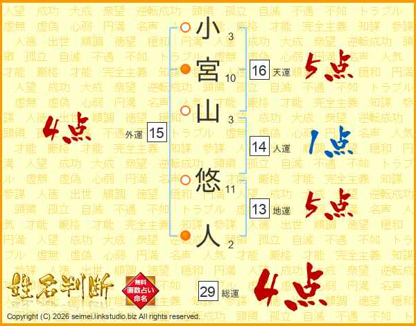 小宮山悠人さんの総運は29画の4点!