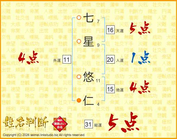 七星悠仁さんの総運は31画の5点!