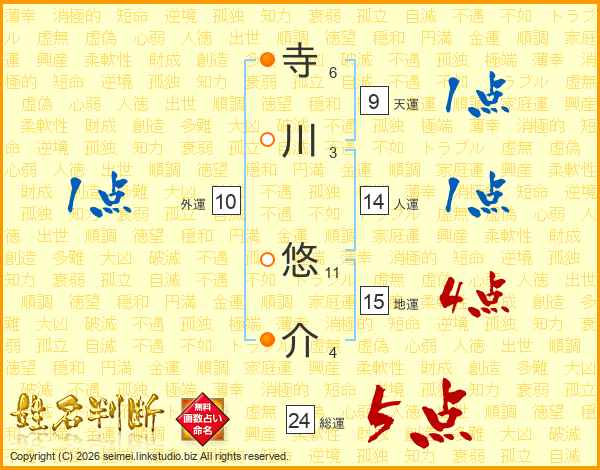 寺川悠介さんの総運は24画の5点!