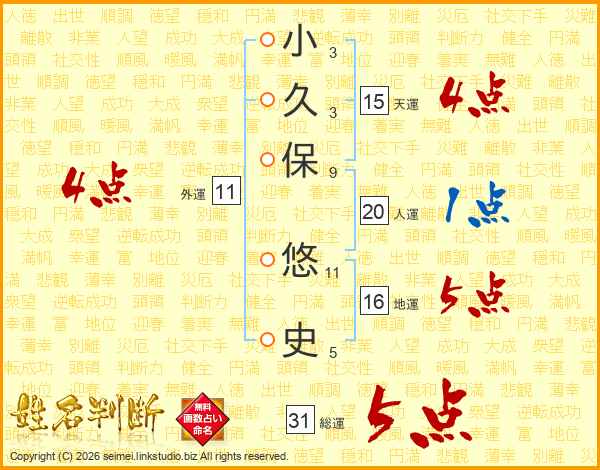 小久保悠史さんの総運は31画の5点!