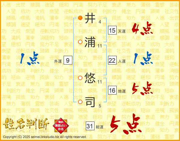 井浦悠司さんの総運は31画の5点!