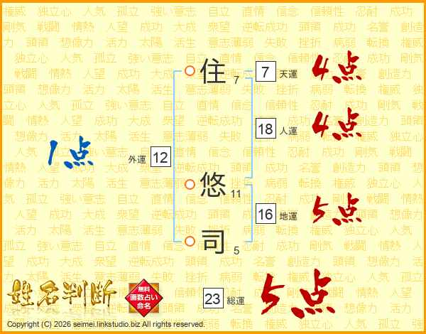 住(7画) 悠(11画)司(5画)
