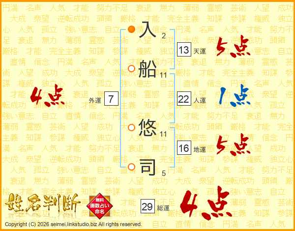 入船悠司さんの総運は29画の4点!