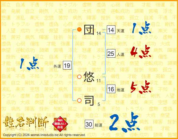 団悠司さんの天運は14画の1点!