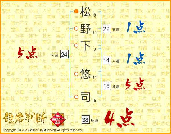 松野下悠司さんの総運は38画の4点!