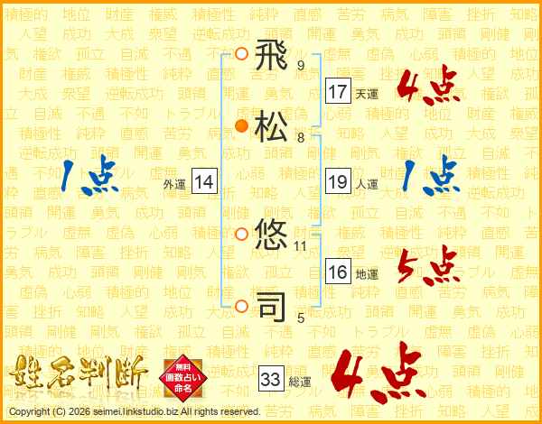 飛松悠司さんの総運は33画の4点!