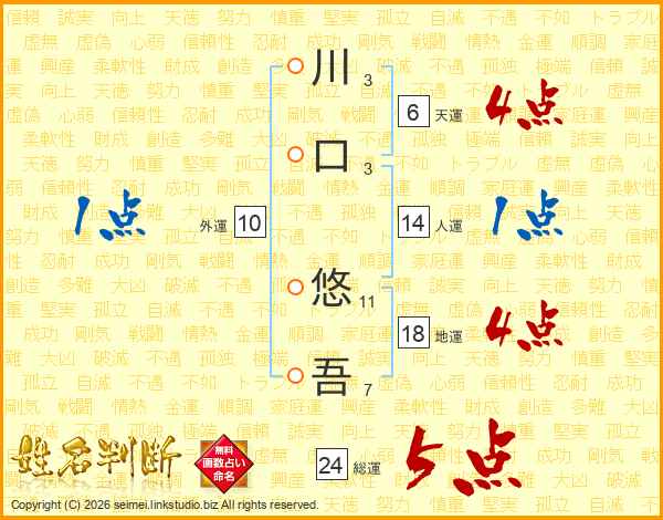 川口悠吾さんの総運は24画の5点!