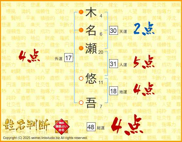 木名瀬悠吾さんの総運は48画の4点!