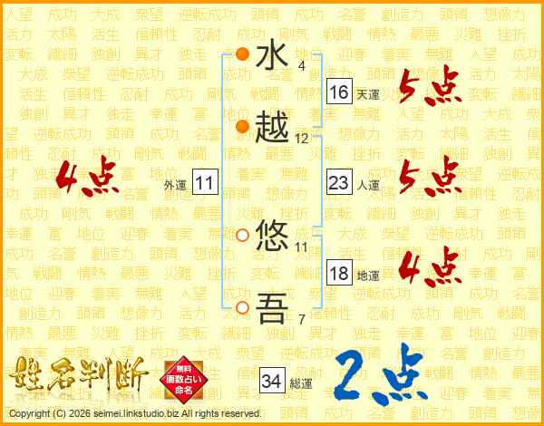 水越悠吾さんの総運は34画の2点!