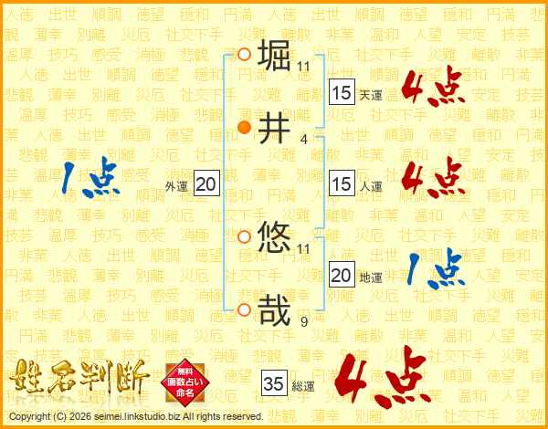 堀(11画)井(4画) 悠(11画)哉(9画)