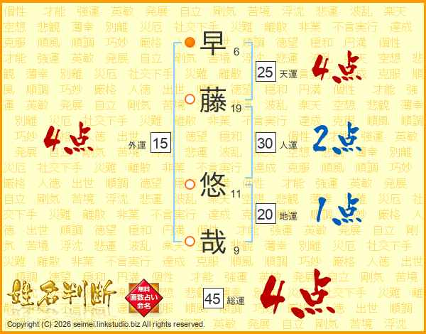 早藤悠哉さんの総運は45画の4点!