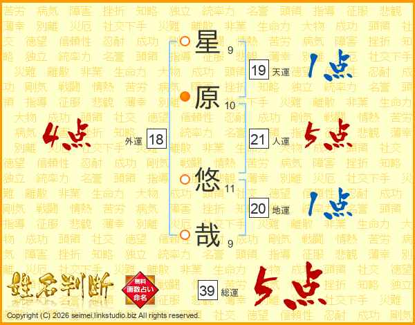 星原悠哉さんの総運は39画の5点!