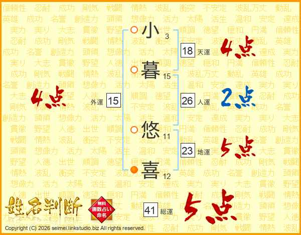 小暮悠喜さんの総運は41画の5点!