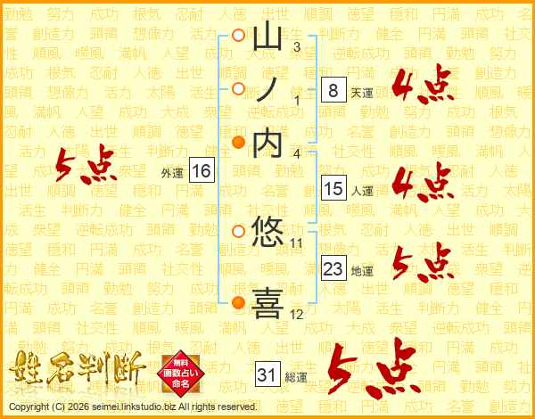 山ノ内悠喜さんの総運は31画の5点!