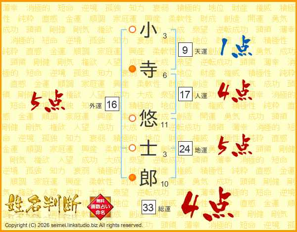 小寺悠士郎さんの総運は33画の4点!