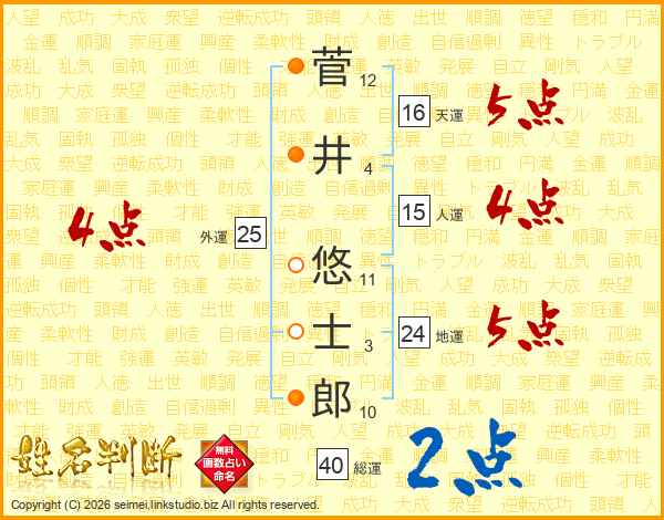 菅井悠士郎さんの地運は24画の5点!