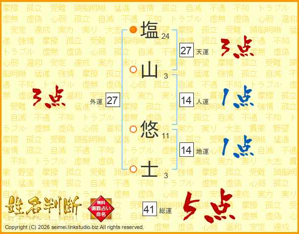 塩山悠士さんの総運は41画の5点!