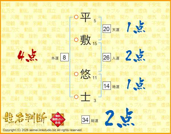 平敷悠士さんの人運は26画の2点!