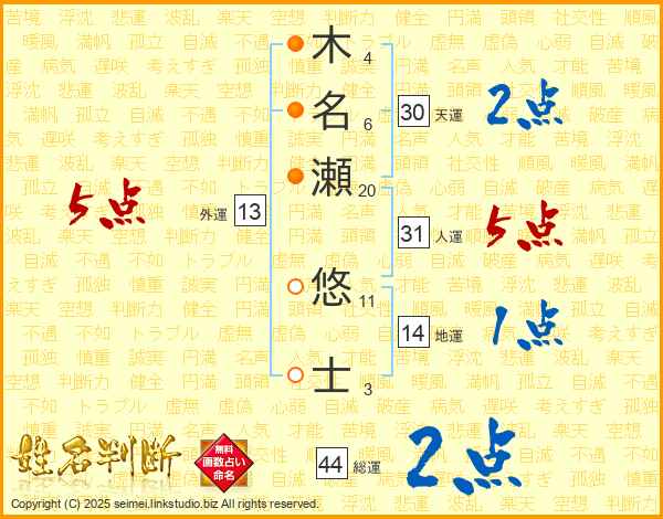 木名瀬悠士さんの総運は44画の2点!