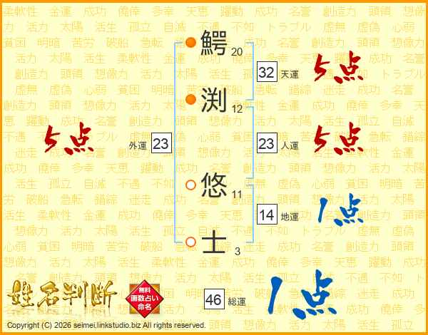 鰐渕悠士さんの人運は23画の5点!
